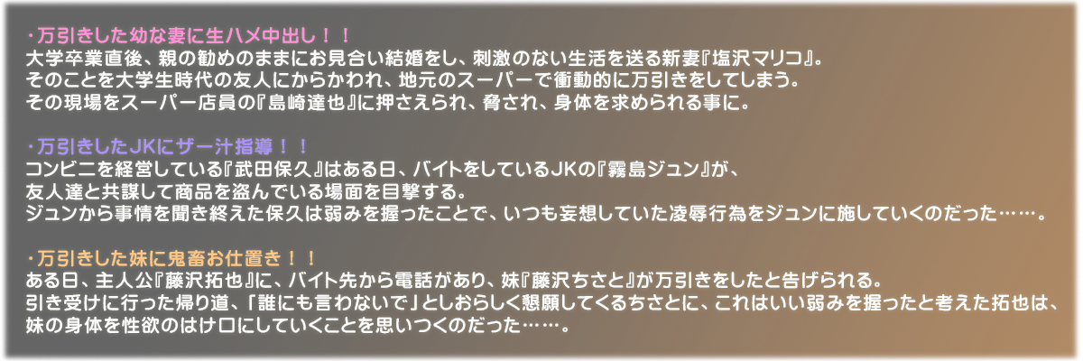 タイトル:万引娘桃色性裁シリーズ3本パック リニューアルパッケージ版