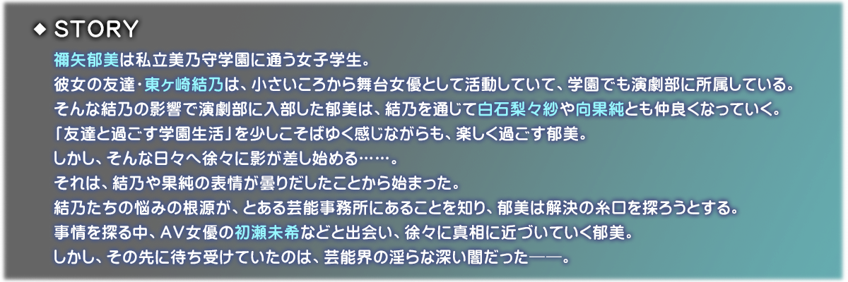 シナリオ:利波創造、やなぎいろ、結城、百日紅こあ、ますのすけ、クロエ、ふとっちょ、上島向陽、須々木鮎尾