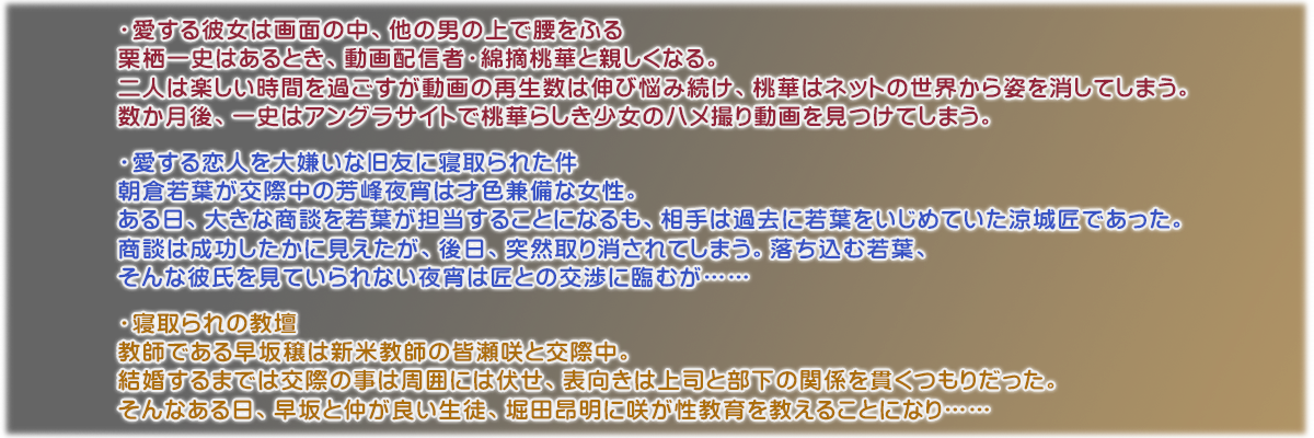 タイトル:恋人、彼女寝取られ 3本パック リニューアルパッケージ版